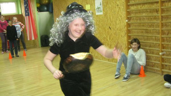 U nas, w Polsce, pączki i faworki, a w Wielkiej Brytanii...zgodnie z brytyjską tradycją, w ostatni dzień karnawału odbywa się powszechne pieczenie naleśników. Tą tradycją postanowiła podzielić się z nami pani Monika – nasza "anglistka". Zaprosiła nas do sali gimnastycznej – tam obejrzeliśmy ciekawe filmy, dotyczące święta naleśnika. A potem odbyły się wyścigi naleśnikowe (zobaczcie zdjęcia - zabawa była naprawdę super!)
