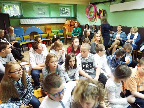 I tak na przykład w kategorii: „Znawca chrząszcza i chrabąszcza” – zwyciężyła nasz pani od przyrody – pani Alina Marek a w kategorii „Muza Młodych Twórców” nagroda przypadła pani Agacie Klimkowskiej. Ciekawą kategorią okazała się „Zaradna Matka Dyrektorka” – tej kategorii nasza pani Dyrektor okazała się bezkonkurencyjna! Laureatką kategorii „Dokumenty bez tajemnic” została oczywiście nasza pani sekretarka. W ulubionej kategorii wszystkich uczniów: „Lepsi niż Batman i Spiderman” zwyciężył nasz pan wuefista, pan Mirek Szymura. W tym szczególnym dniu żaden z pracowników nie wyszedł bez Oskara. Pamiętaliśmy o wszystkich i wszystkim jednogłośnie życzymy: WSZYSTKIEGO NAJLEPSZEGO!!!