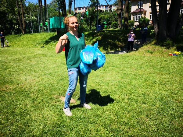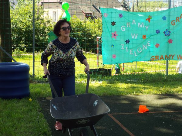 Później zostaliśmy podzieleni na cztery zielone grupy: selerów naciowych, jabłek, koniczyny i winogron. Każda grupa ze swoimi opiekunami brała udział w różnych zabawach, konkursach i konkurencjach sportowych. Były sztafety, biegi z taczkami, rzuty do kosza i wiele innych ciekawych atrakcji. Były też zielone potrawy, które mogliśmy popróbować.